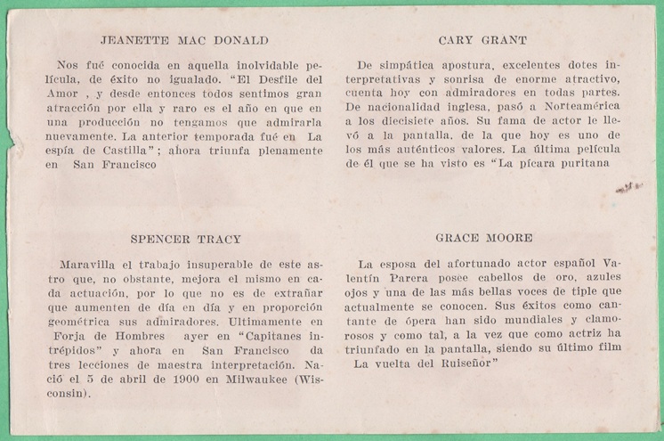 Anonymous Film Stars (Multiple Stars Per Card) - Jeanette MacDonald - Spencer Tracy - Cary Grant - Grace Moore