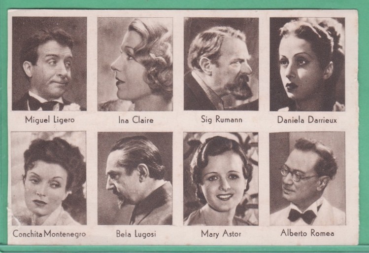 Anonymous Film Stars (Multiple Stars Per Card) - Miguel Ligero - Ina Claire - Sig Rumann - Daniela Darrieux - Conchita Montenegro - Bela Lugosi - Mary Astor - Alberto Romea (Front)