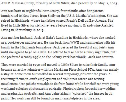 "Our Departed" Atlantic Highlands High School Graduates Lasting, Heartfelt Memories |