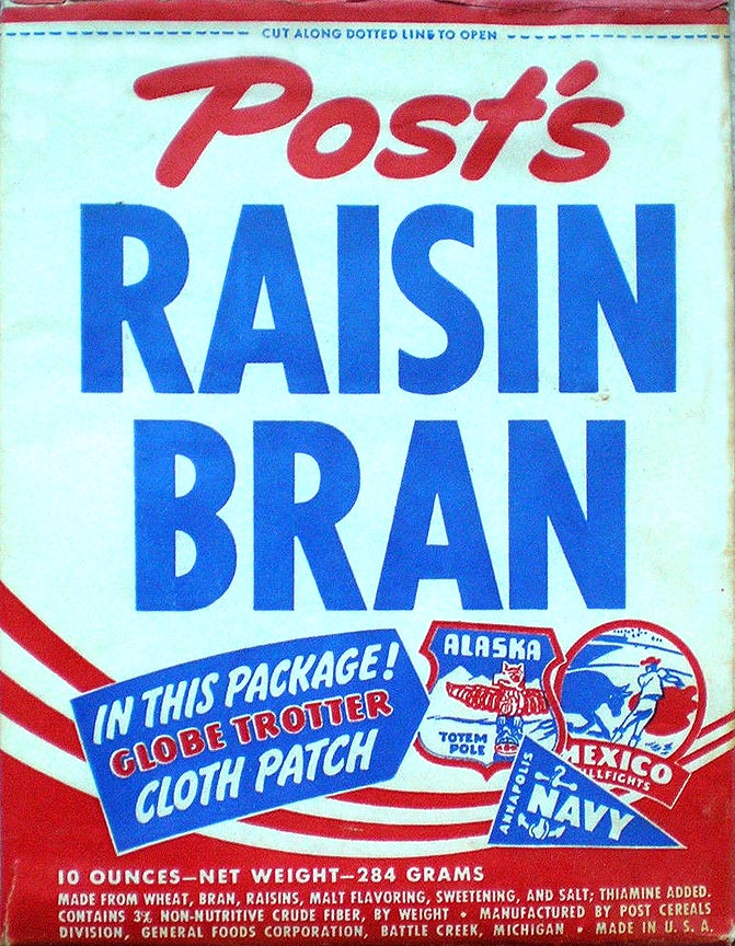 Post Cereal - Raisin Brand Views Of World - BC17 1950s ... set of 44 cloth patches |