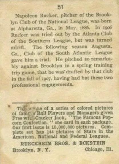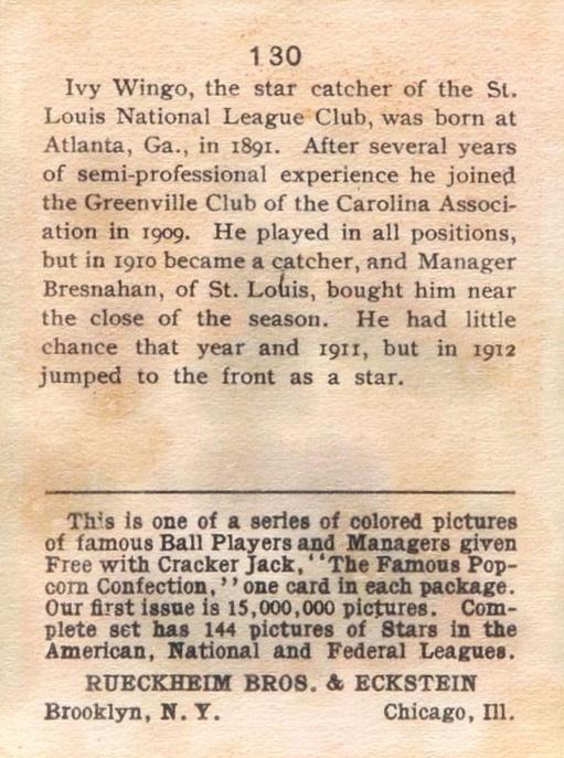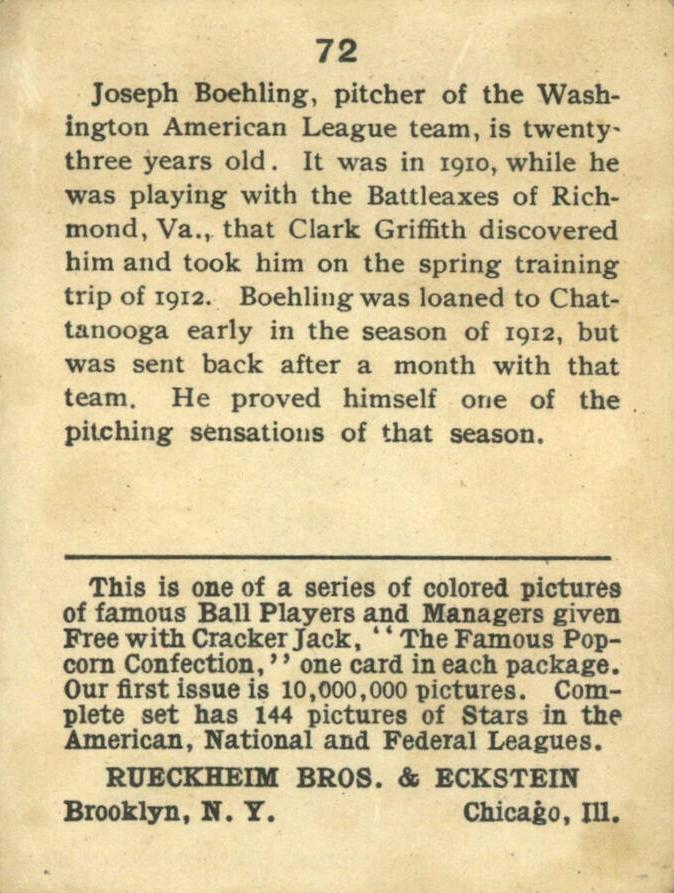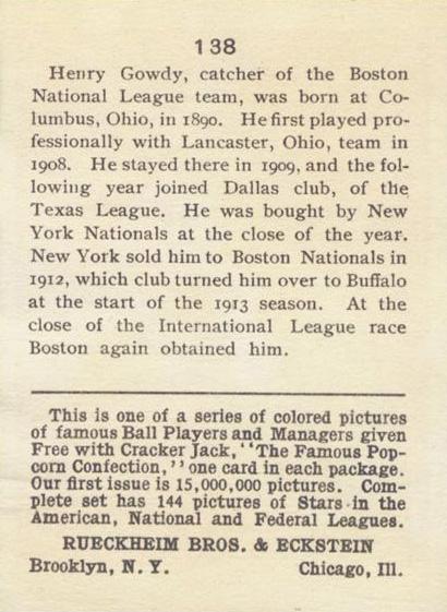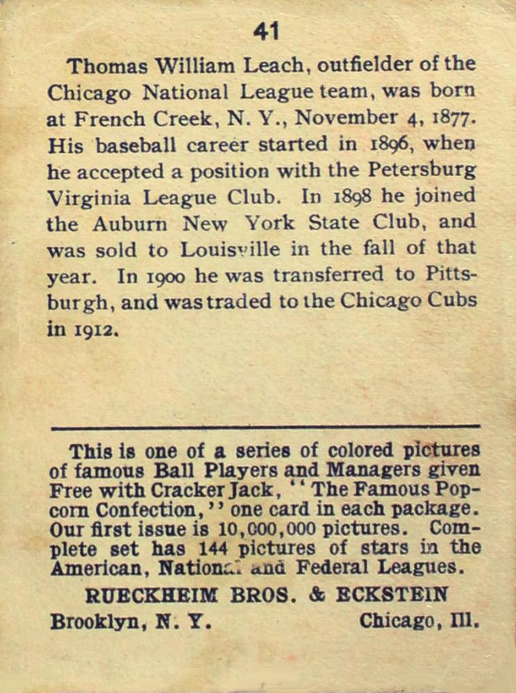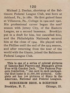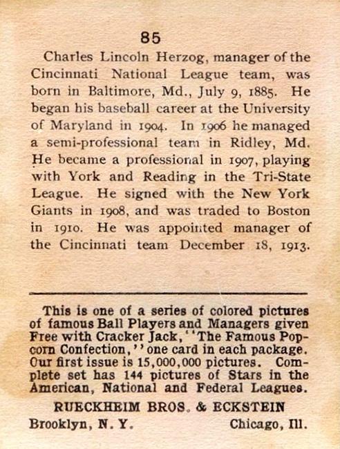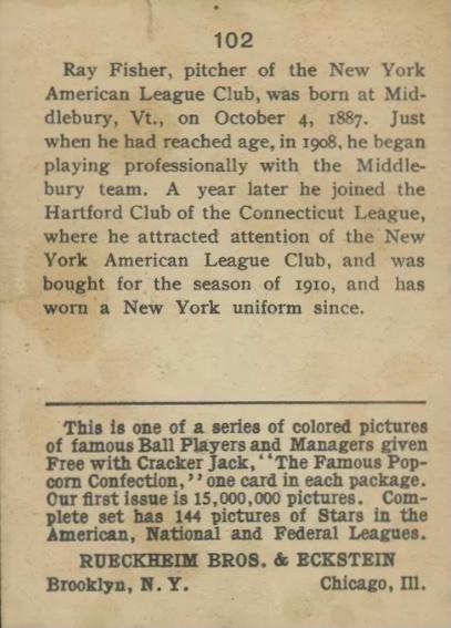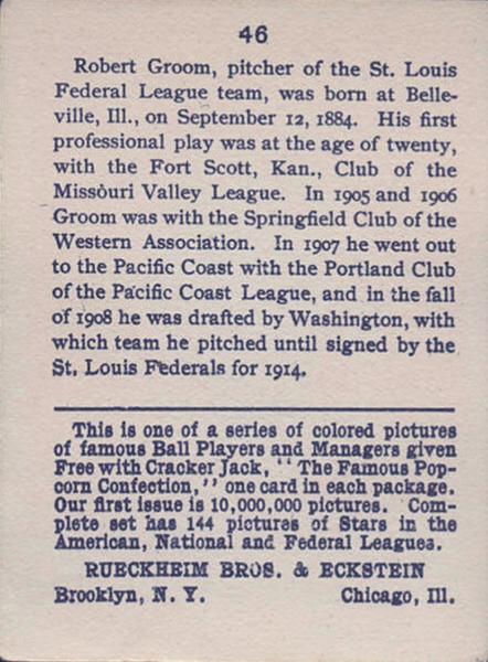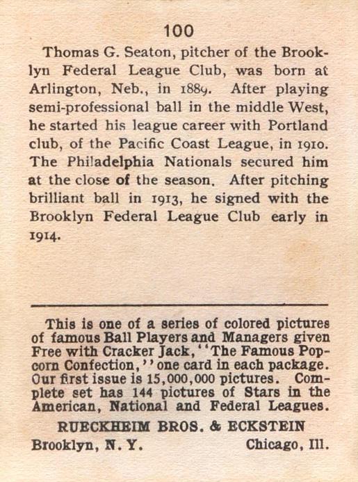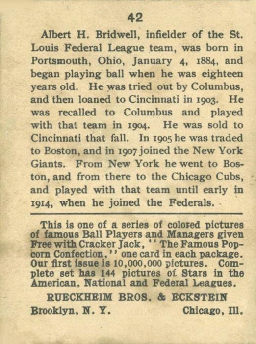 Cracker Jack Ball Players - E145-1 1914 ... Set of 144 cards ... 2 1/4" x 3" Contributors ----------- TCDB.com |