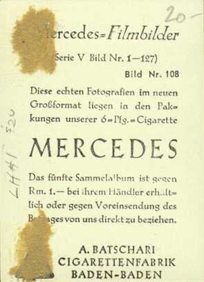 Filmbilder Serie V, Issued with Batschari cigarettes in Germany in the 1930s