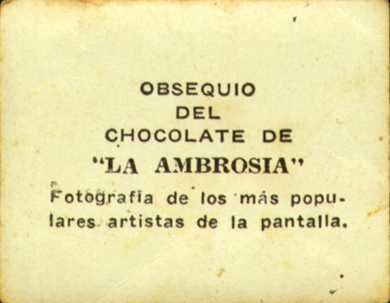 Fotografia de los mas Populares Artistas de la Pantalla, issued with La Ambrosia Chocolates in Cuba (Card #38) in the 1930s