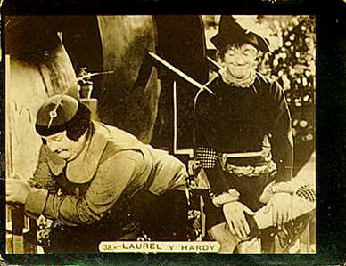 Laurel and Hardy Cards #26-50, issued by Saint Hermanos with their Aguila Chocolates for their Laurel and Hardy Album in Uruguay in 1936 (cards #26-50 formed a Laurel and Hardy puzzle)