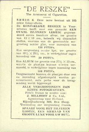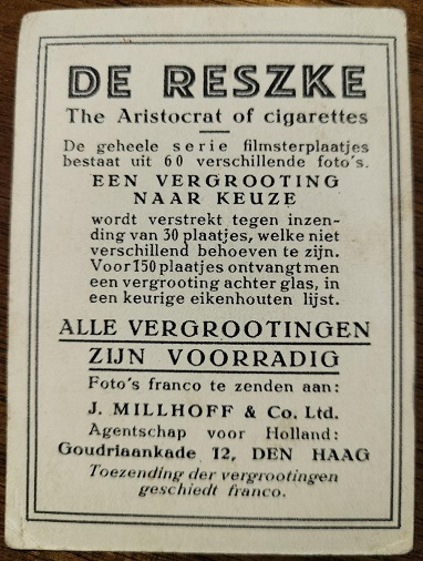 Film Stars Serie 6, issued by Millhoff with De Reszke Cigarettes in The Netherlands in the 1930s