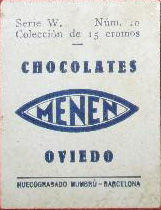 Serie W, issued in Spain (Menen chocolates advertising on back)