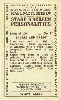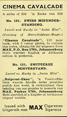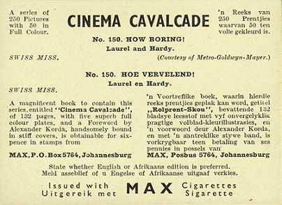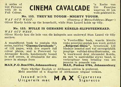 Cinema Cavalcade, issued with A & M Wix cigarettes in South Africa in 1940 (scene from Way Out West)