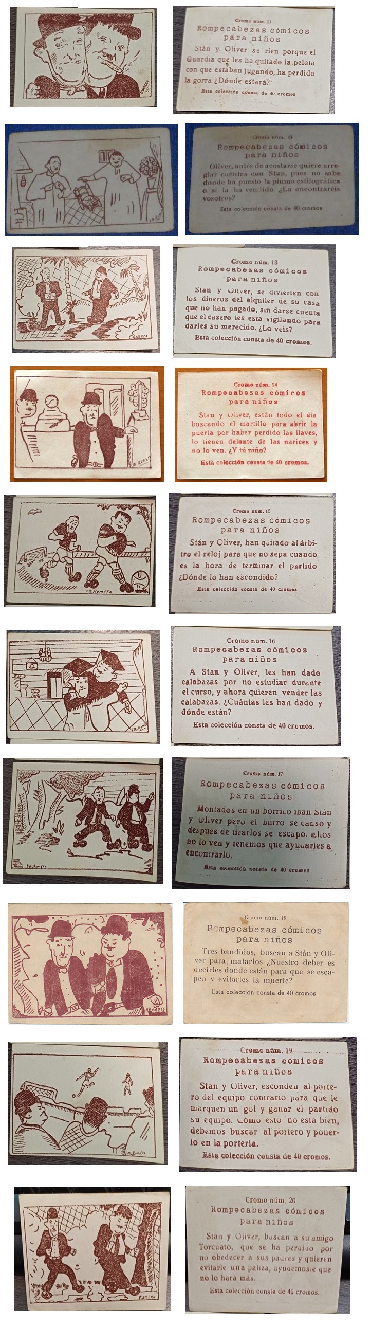 Comicos Para Ninos, issued by Rompecabezas in Spain in the 1930s (all the Laurel and Hardy cards in this set are numbered from 11-20)