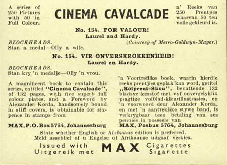 Cinema Cavalcade, issued with A & M Wix cigarettes in South Africa in 1940 (scene from Blockheads)