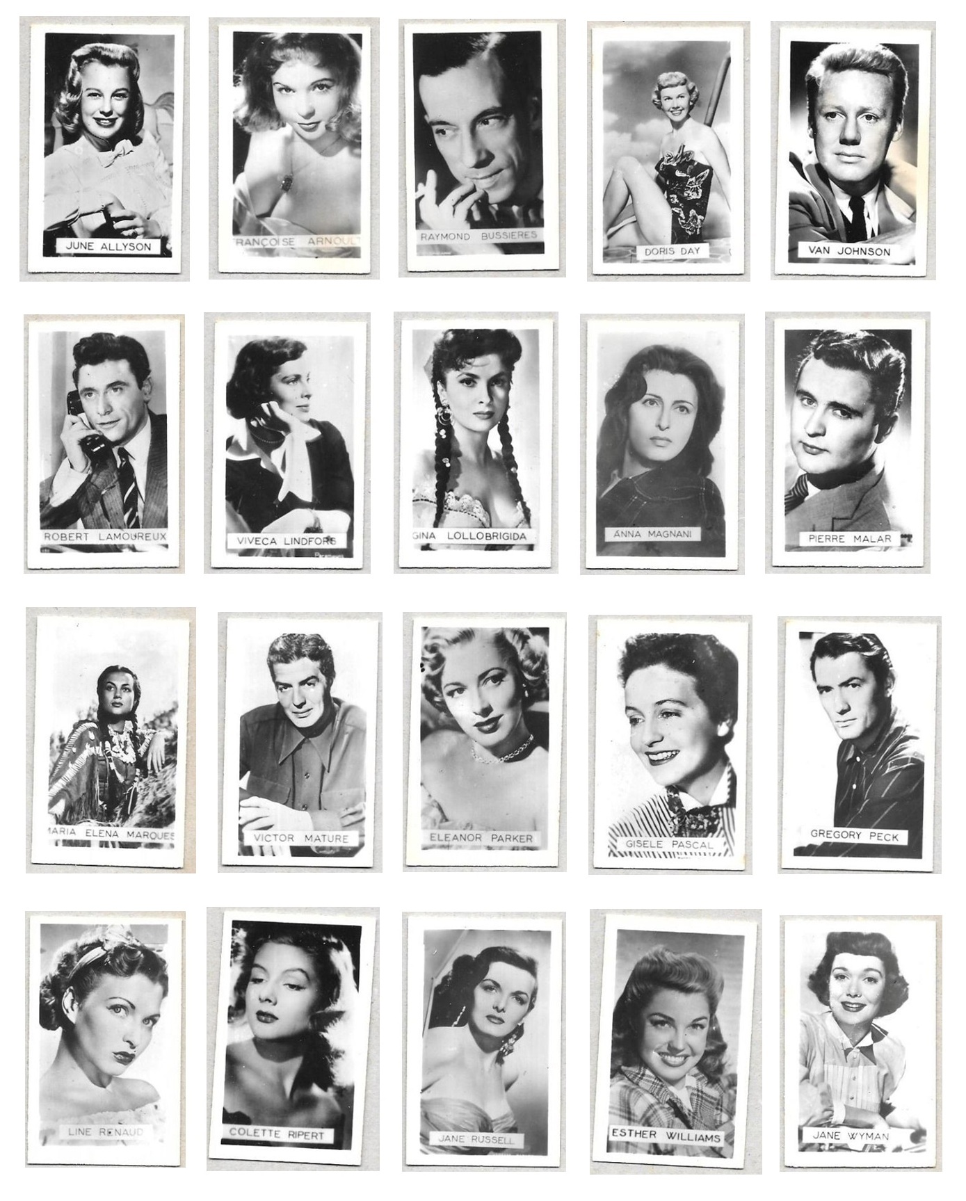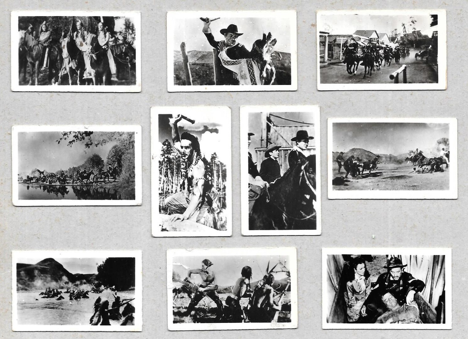 Graindor Film Stars - Assorted Untitled Western Scenes - Note that 2nd card in 2nd row shows Ricardo Montalban. 2nd card in 3rd row shows Charlton Heston (far left actor).