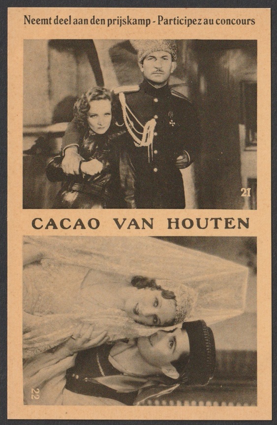 Van Houten Unidentified Film Stars - Cards 21 Marlene Dietrich & Victor McLaglen in "Dishonoured" and 22 Ramon Novarro & Dorothy Jordan in "In Gay Madrid"