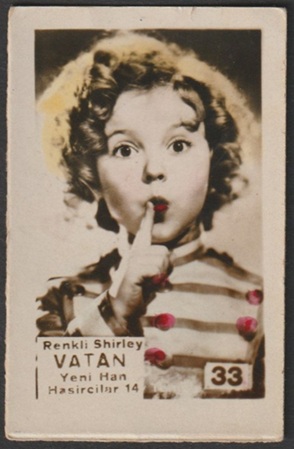 Notes: Checklist incomplete. Cards were printed with grey lines on the back - possibly for a message to be written on the reverse. It is unknown with what product the cards were issued - whether this was tobacco or confectionery. The card was purchased from Turkey where it was probably issued. Only one card have been studied - featuring Shirley Temple. The cards were purchased as part of a Shirley Temple collection so it is unclear whether the set features a range of stars or whether the entire set is of Shirley Temple.