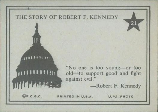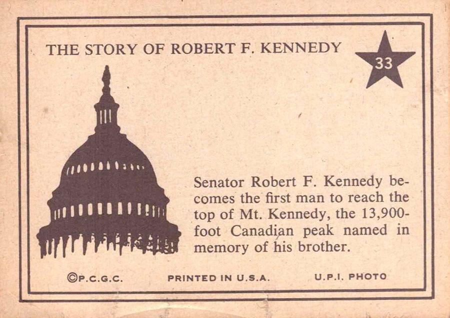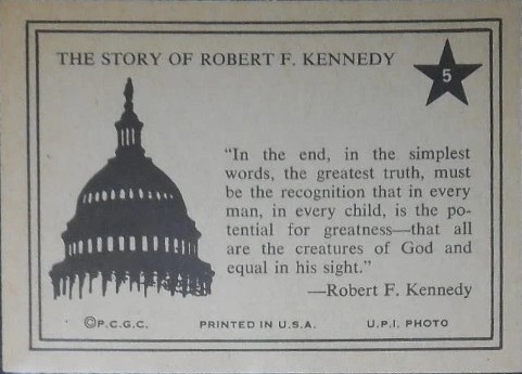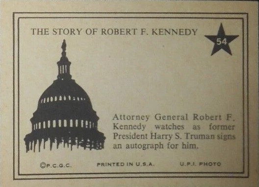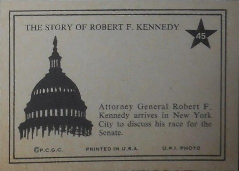 | Visit the VNS Chat Board email moderator Tom Boblitt autograp@gmail.com | Philly Gum Robert F Kennedy 1968 ... set of 55 cards Contributor - Bill Oliver |  |