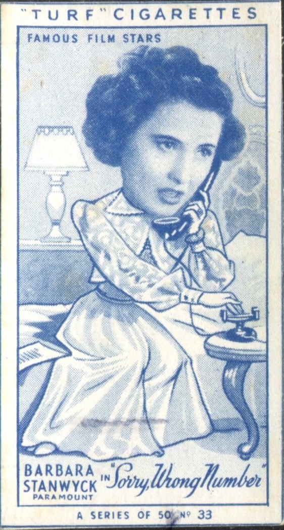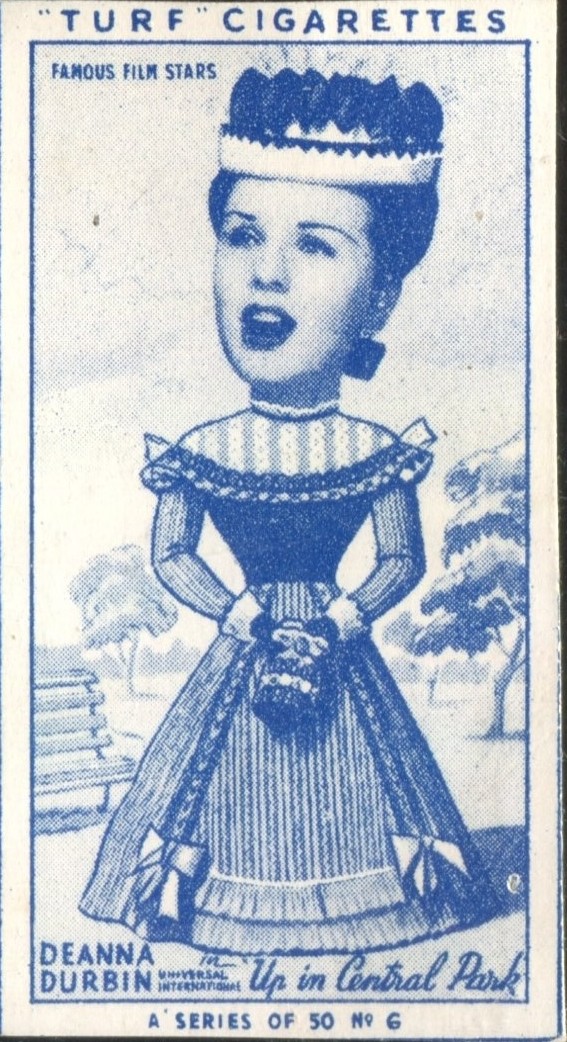 Carraras - Turf Cigarettes Film Stars 1947 ... Set of 50 ... 1949 ... Set of 50 ... 1 3/8" x 2 5/8" Contributors ---------- Bill Oliver Troy Kirk |