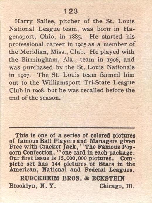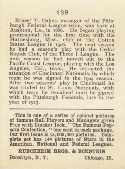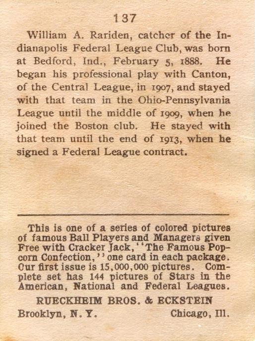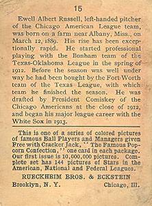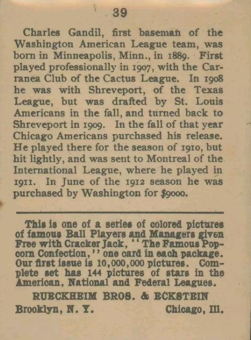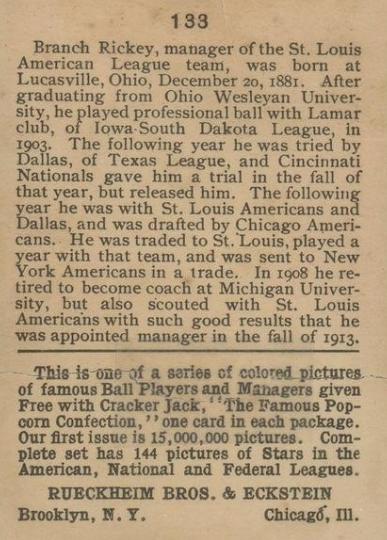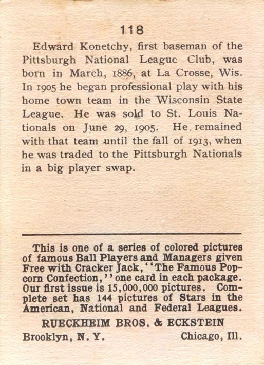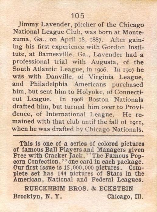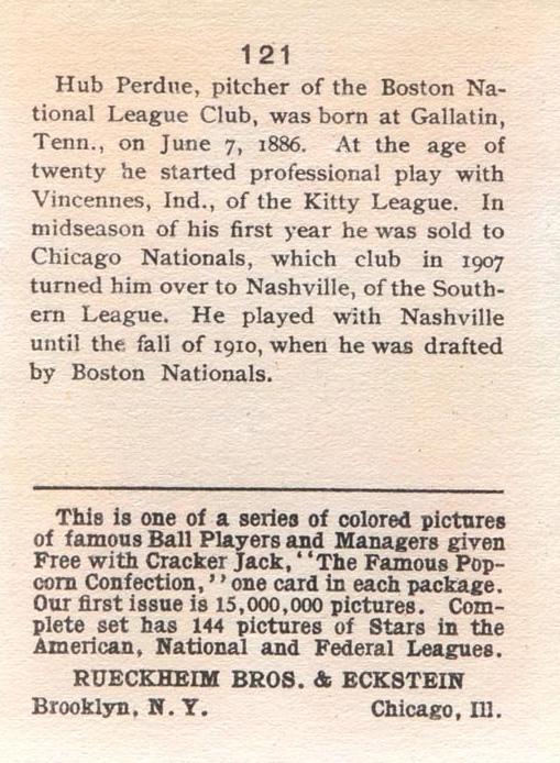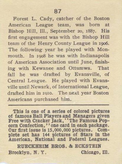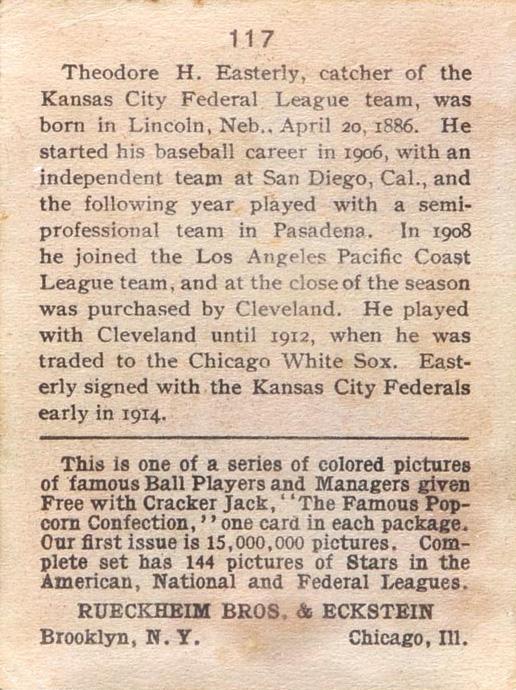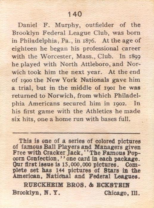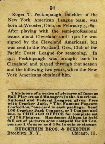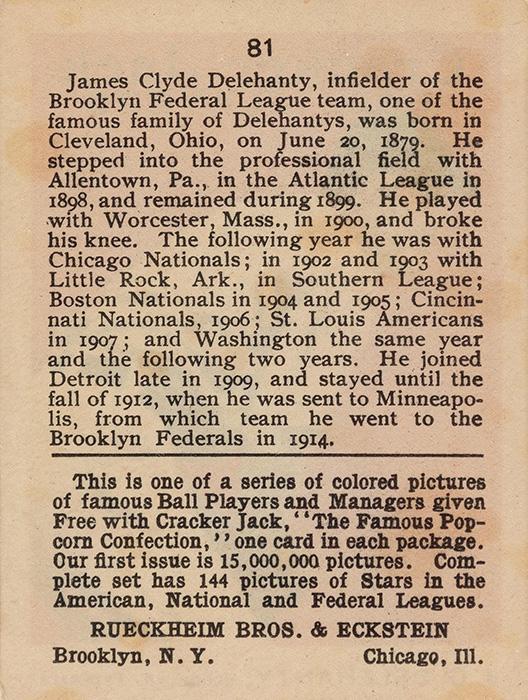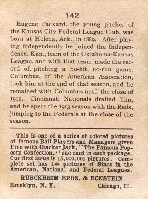 Cracker Jack Ball Players - E145-1 1914 ... Set of 144 cards ... 2 1/4" x 3" Contributors ----------- TCDB.com |
