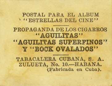 Film Stars, issued with Aguilitas cigarettes in Cuba in the 1930s