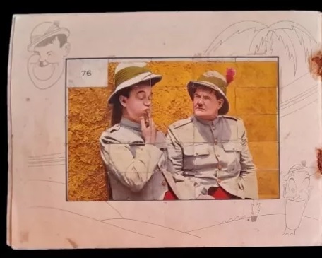 Laurel and Hardy Cards #76-100, issued by Saint Hermanos with their Aguila Chocolates for their Laurel and Hardy Album in Uruguay in 1936 (cards #76-100 formed a Laurel and Hardy puzzle)