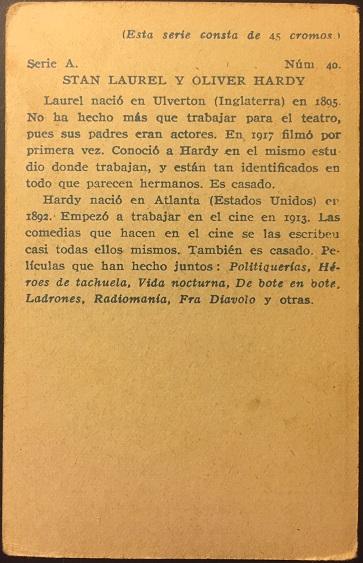 Laurel and Hardy Cards #1-25, issued by Saint Hermanos with their Aguila Chocolates for their Laurel and Hardy Album in Uruguay in 1936 (cards #1-25 formed a Laurel and Hardy puzzle)