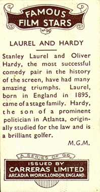 Famous Film Stars, issued with Carreras cigarettes in England in 1935 (this is the more common variation)