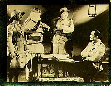 Laurel and Hardy Cards #26-50, issued by Saint Hermanos with their Aguila Chocolates for their Laurel and Hardy Album in Uruguay in 1936 (cards #26-50 formed a Laurel and Hardy puzzle)