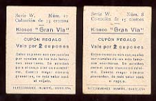 Serie W, issued in Spain (Kiosco Gran Via advertising on back)