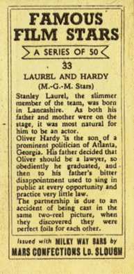 Famous Film Stars, issued with Mars Milky Way candy bars in England in 1939