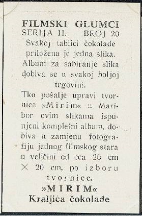 Issued with Mirim Chocolates in Serbia in the 1930s