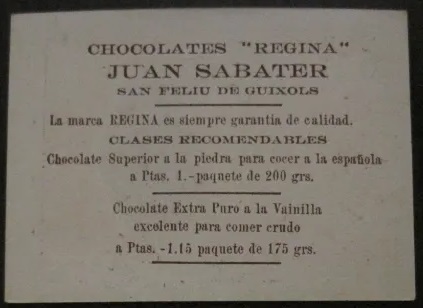 Serie M (with Juan Sabater Regina Chocolates advertising) issued in Spain in the 1930s