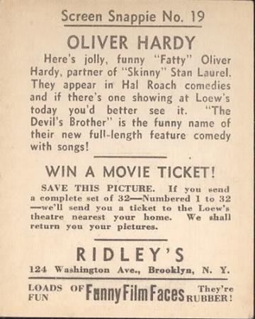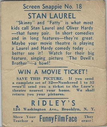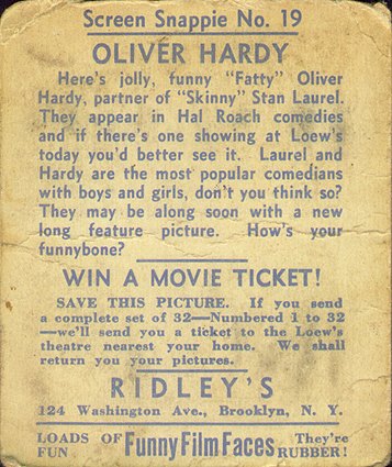 Screen Snappies (black backs), issued at movie theaters in the USA in 1934