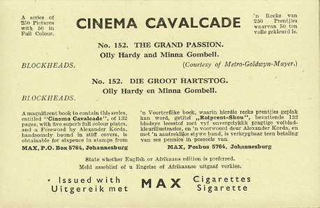 Cinema Cavalcade, issued with A & M Wix cigarettes in South Africa in 1940 (scene from Blockheads)