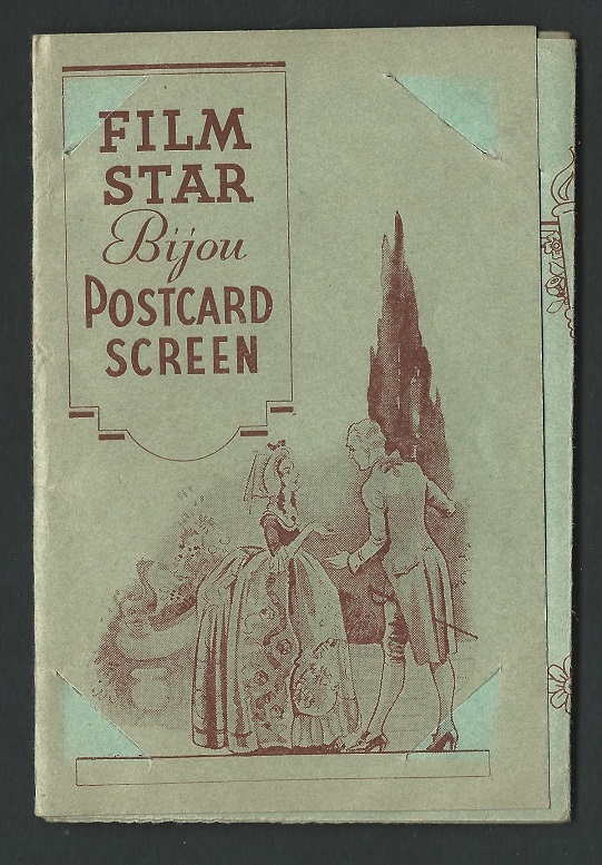 Girls' Crystal Film Star Postcards - Folder open with three cards displayed