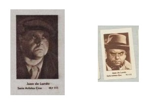 Serie Artistas Cine - Two Variations for #111 Juan De Landa - 2nd card coming from same group of cards containing Gary Cooper card in NY Yankees hat