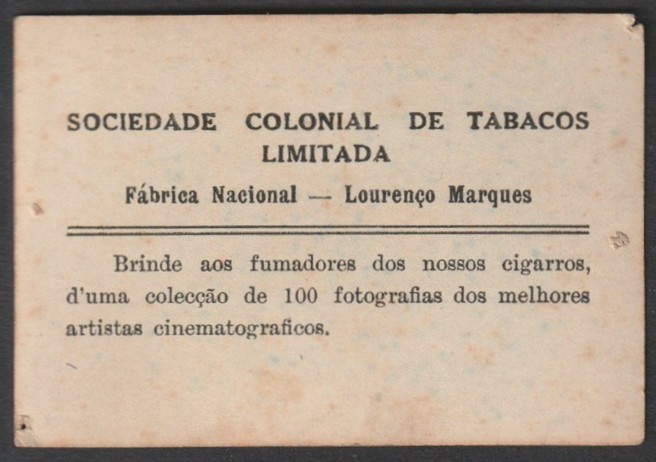 Sociedade Colonial de Tabacos Limitada Cinema Stars (Numbered) | Misc N-S Sales List Misc N-S Checklists | Movie Card Website Front Page